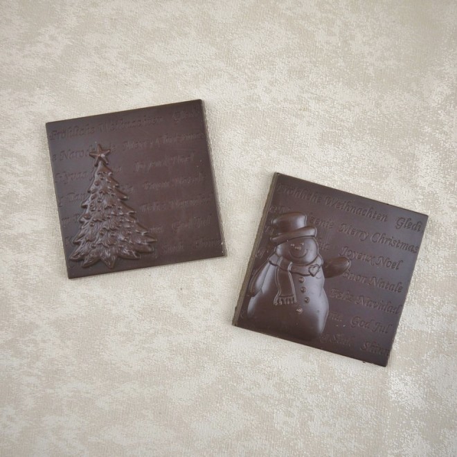 Demi tablette de Noël en chocolat noir ou lait à l'unité, à choisir entre le sapin ou le bonhomme de neige