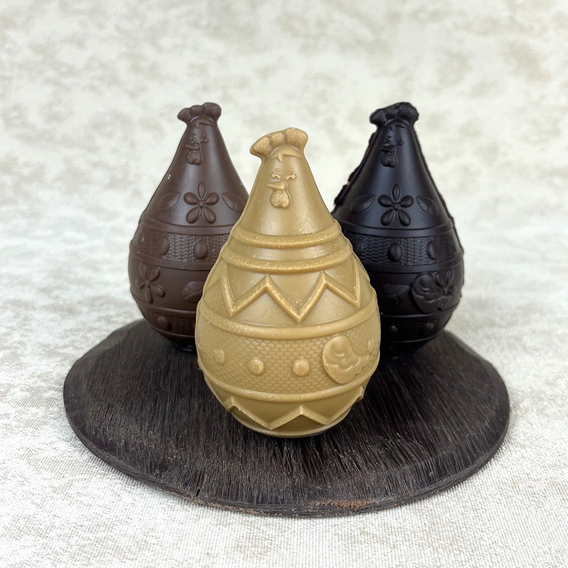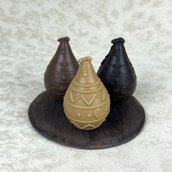 Trio de poules garnies en chocolat