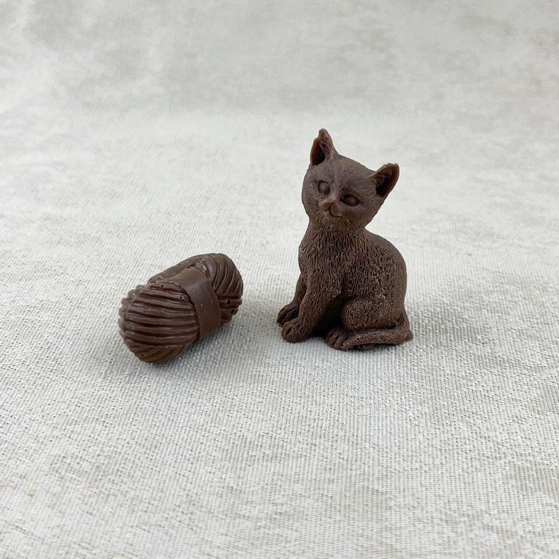 Chat et sa pelote en chocolat