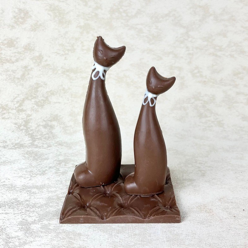 Duo de chat sur son coussin en chocolat
