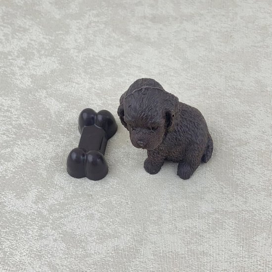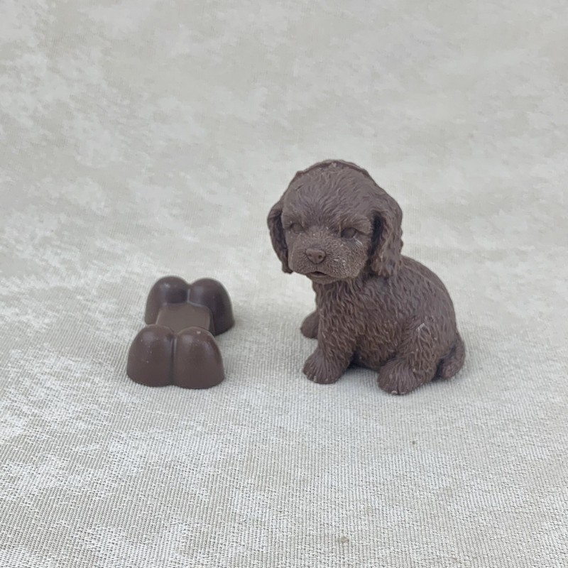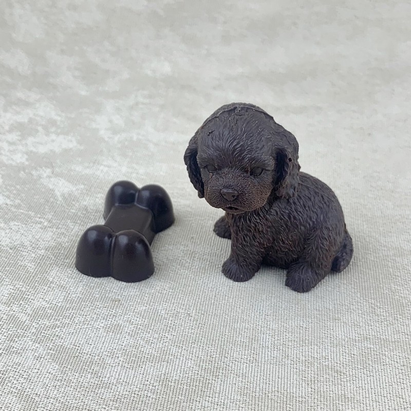 Chien avec son os en chocolat